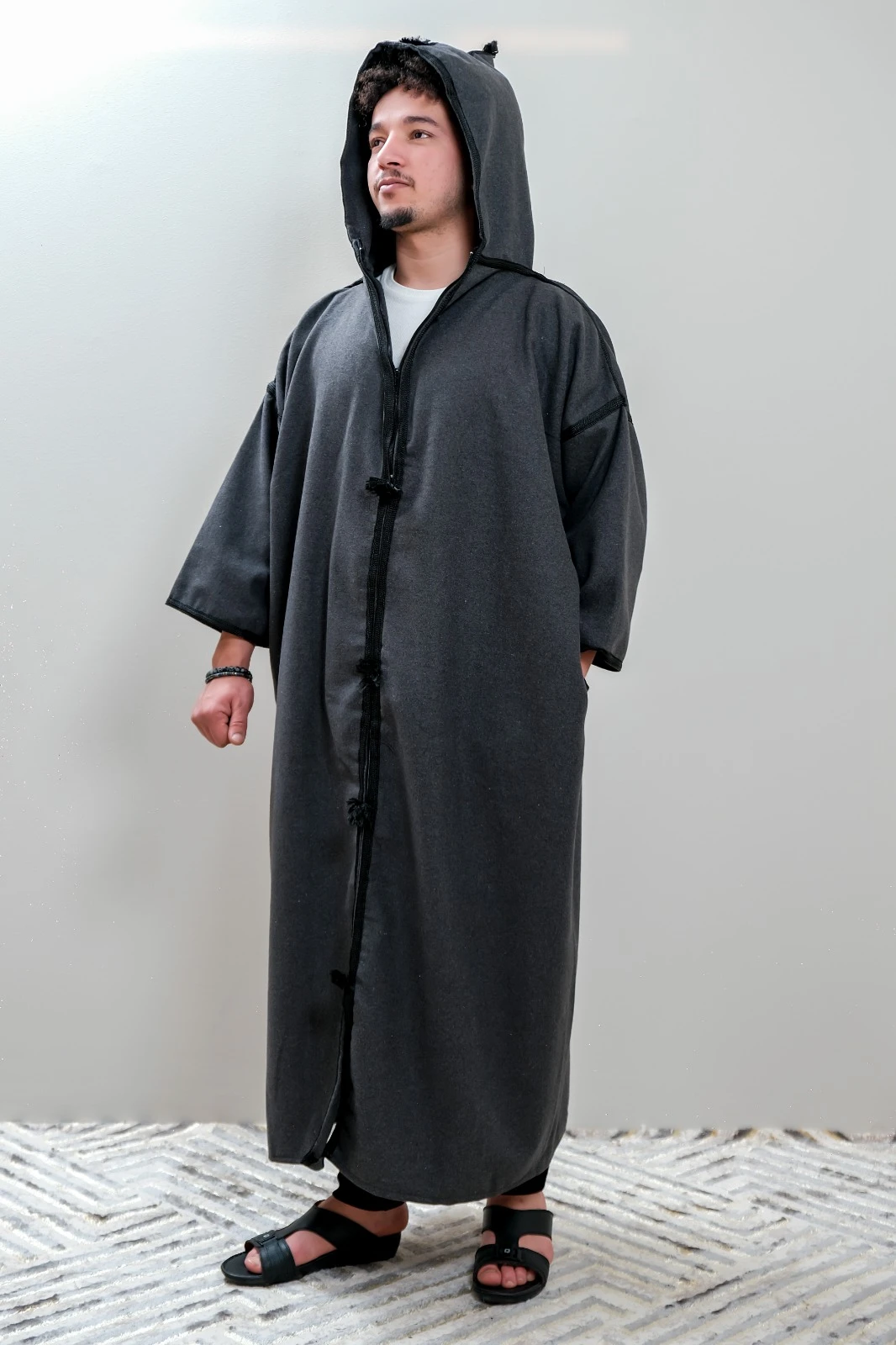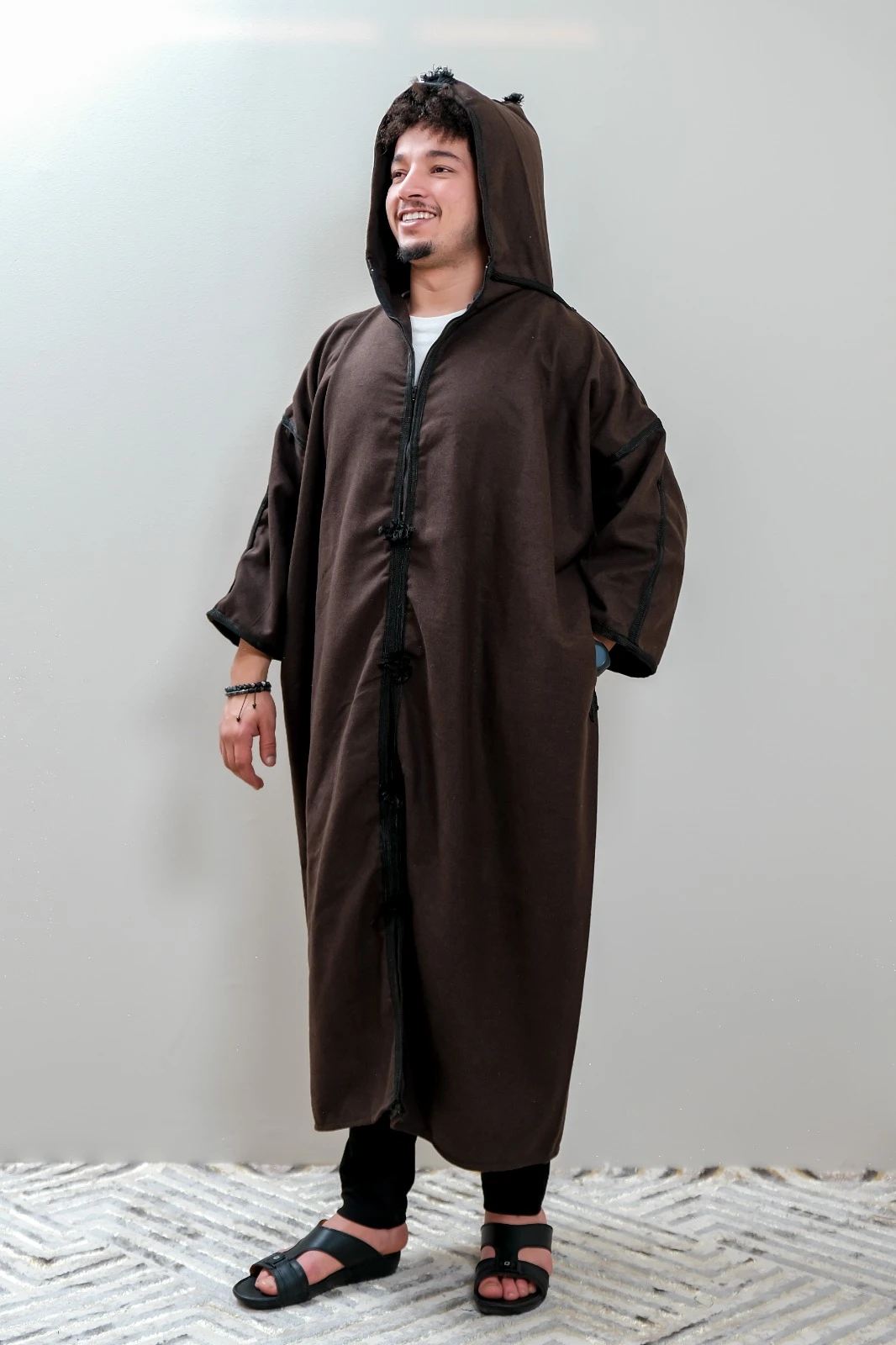 The Double-Layer Wool Qishabiyah is crafted from premium natural wool and stamped with traditional craftsmanship. Its classic Eastern design reflects authentic heritage and ensures durability, warmth, and comfort during the winter season.